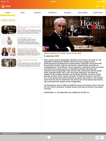 ONS is dé tv-zender voor mensen die nostalgie een warm hart toedragen. ONS biedt een breed aanbod aan goede series, Nederlandse en buitenlandse speelfilms, geschiedenis, muziek en entertainment.