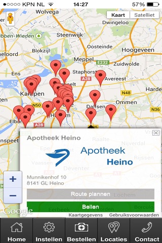 Naast het versturen van een foto van uw recept kunt u direct bellen met uw apotheek of de route plannen naar uw apotheek.
