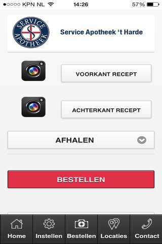 Maak een foto van de voor en achterkant van uw recept, kies of u het geneesmiddel komt afhalen of bezorgt wilt hebben en verstuur de foto.