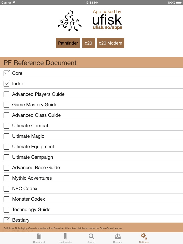 This app gives you the reference documents for Pathfinder, 5e, d20 Modern and d20 v3.5 in an easily accessible format. While your friends are struggling with heavy books and well hidden rules, use the lightning fast search or your very own bookmarks to settle all questions long before your fellow players have found where to begin reading their dead tree tomes.