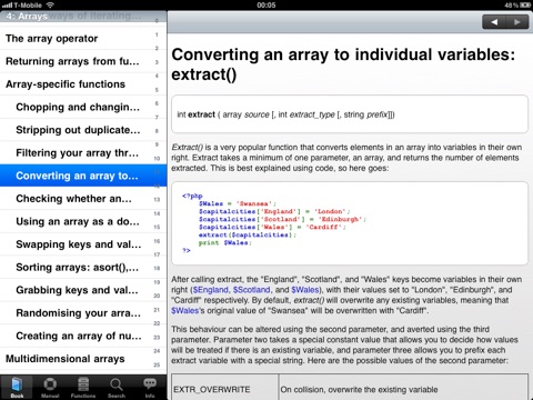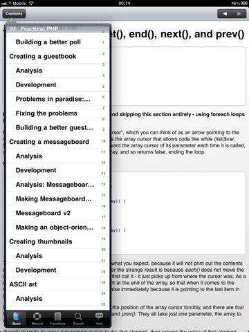 I code php for a living. I like to read all things php just in case Im missing something… Going through the book section Ive found a whole bunch of small things that either I didnt know or had forgotten from years gone by. Love this app!