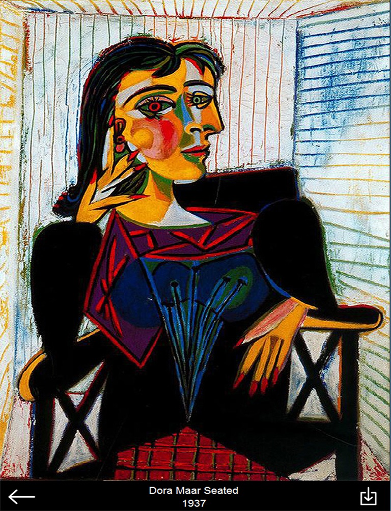 This app is a image gallery of Picassos portraits from the beginning until the end of his career.