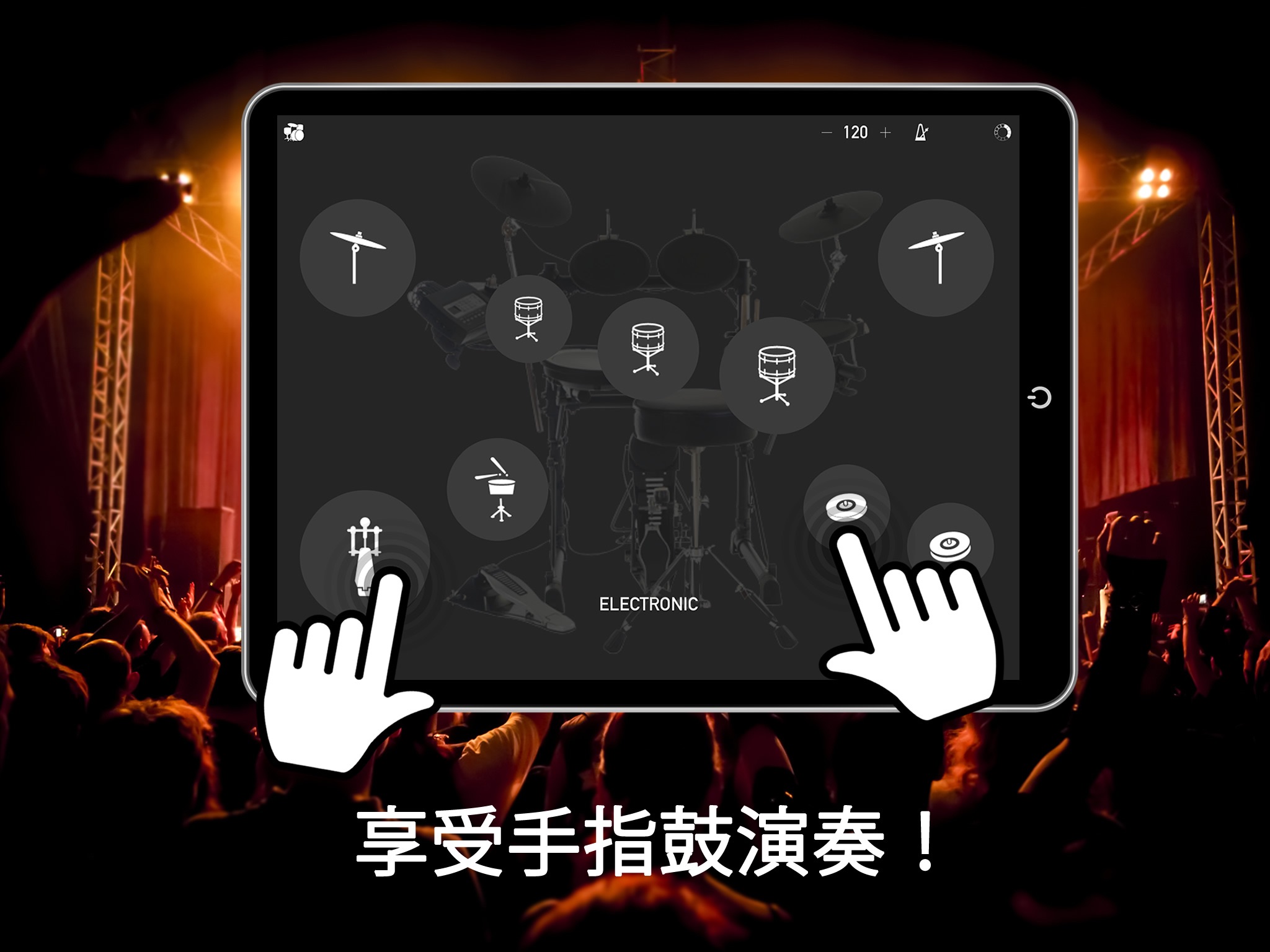 -> Multi-touch drumming: Play multiple drums simultaneously