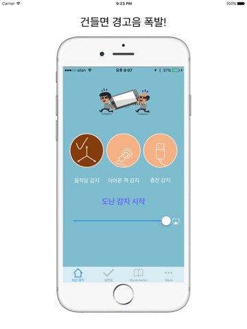 도난 감지시, 홈 버튼/전원 버튼을 아무리 눌러도 반응 하지 않기 때문에 앱 강제 종료 매우 어려움! (단, 방전시 꺼질 수 있음.)