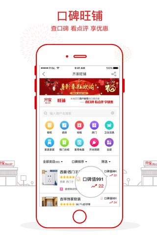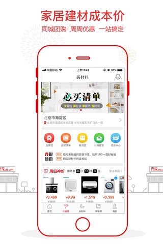 齐家APP为用户提供:金牌装修公司免费出方案免费报价、整体家装套餐、口碑建材家居店铺、成本价线下团购、线上建材家居商城等装修服务。