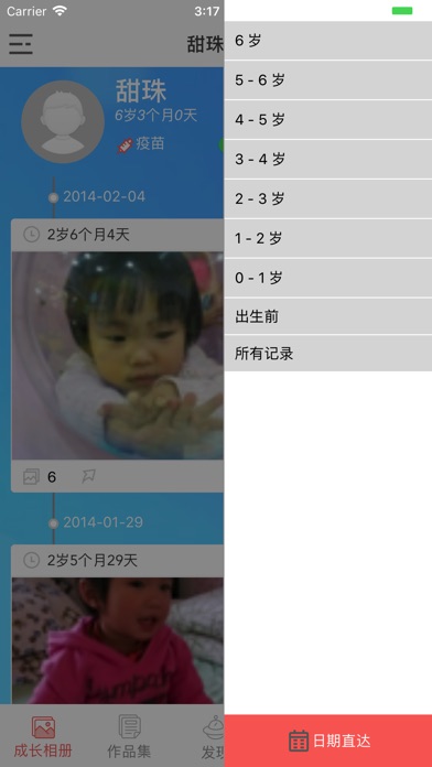 -按天展示成长日记,详细显示宝宝当天年龄