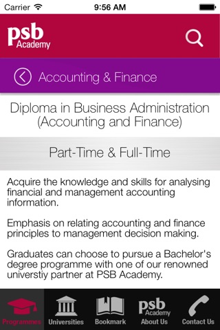 The PSB Academy Course Selector is your one-stop information portal on all our programmes. You can choose from a comprehensive suite of full-time or part-time programmes for diplomas, undergraduate and postgraduate degrees across multi-disciplines or find out more about our premier university partners from Australia and United Kingdom.