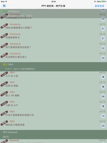 - 觀看熱門看板及文章列表