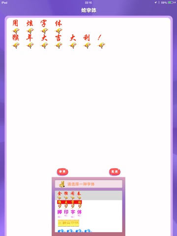 现已包含麻将字体、星星字体、浪漫字体、粽子字体、小熊字体、卡片字体、气球字体、脚印字体、兔兔字体、奶瓶字体⋯⋯数十种字体,陆续增加