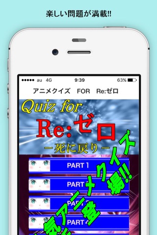 人気アニメRe:ゼロのクイズアプリです。