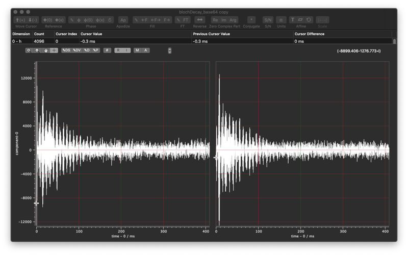 RMN is a multi-dimensional signal processing application capable of handling uniformly sampled signals in an arbitrary number of dimensions. Provides a number of signal processing operations on real, complex, or multi-channel signals, such as Fourier Transform, apodization, data filling, interactive phase corrections, complex conjugate, 2D affine (translate, shear, rotate, scale) transformations. Signals can be added, subtracted, or multiplied. Two-dimensional signals can be displayed as intensity, contour, or stacked plots.