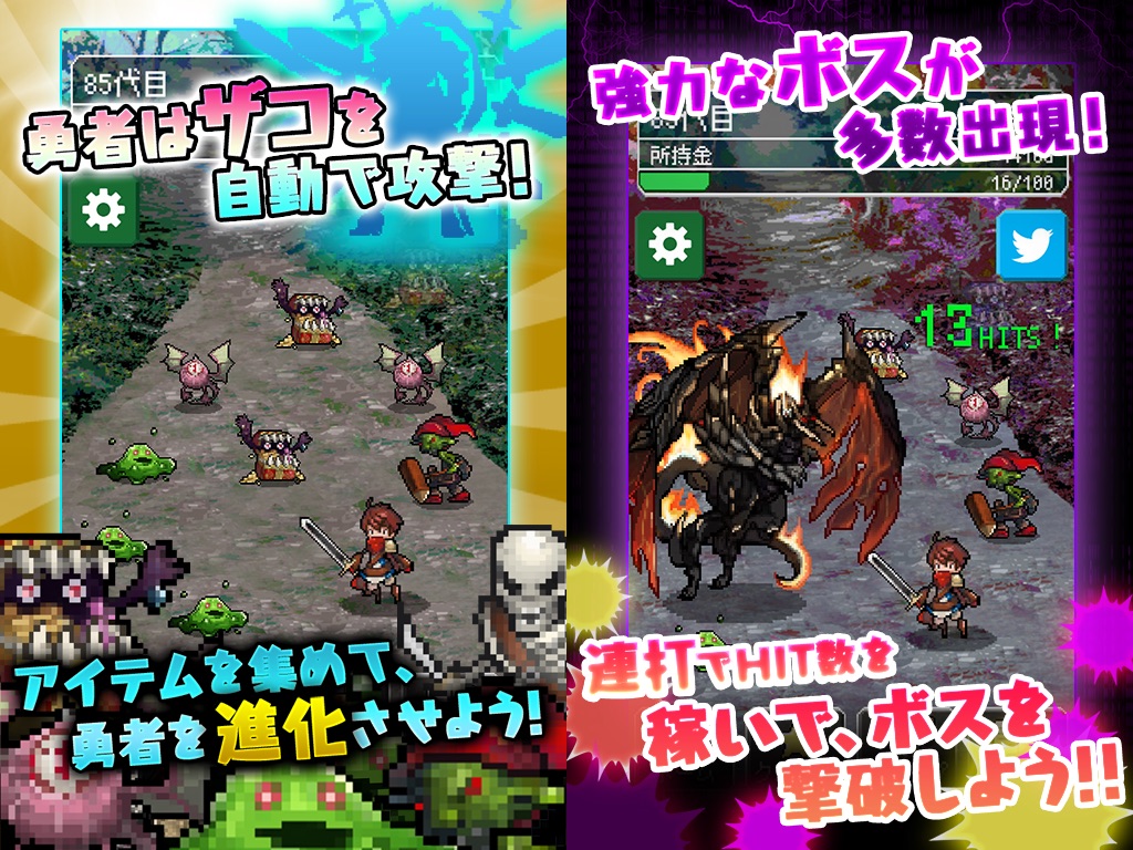 ・ポップで可愛い勇者やモンスターが登場!怖いボスもいるよ!
