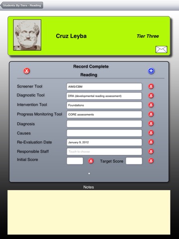 RTI is the app that will help you keep track of your students. The RTI tools are easily added to fit your school’s needs. Have you ever started an intervention program for a student then forgot to re-evaluate that student? Happens more often than we would like to admit. The RTI app has nice features that will provide a reminder when it is time to check on your students. All student notes can easily be emailed to your team, parents, and other key stakeholders.