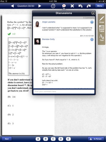 This app is awesome. It is a must for SAT preparations. This app really helps by providing many questions along with their solutions. The discussion forums along with well experienced teachers also help a lot. In short, this app is really worth downloading than any other apps :-). Thanks to the team for such an awesome app.