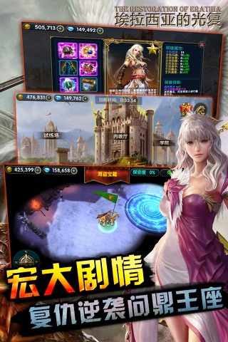 -诚意满满的挂机游戏。《埃拉西亚的光复》是一款单机挂机策略RPG游戏。每天不需要投入很大精力,即可获得海量资源。待你获得足够资源,率领您的英雄金戈铁马吧。
