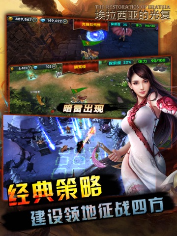 建造宏伟的城堡,参加自由开放的战斗。升级繁华城市,进阶强力英雄,打造史诗装备,探索一幅又一幅美轮美奂的山川河流,在探索中体验战争的乐趣。
