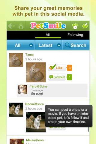 their pet. PetSmile supports Facebook, twitter, and mixi.