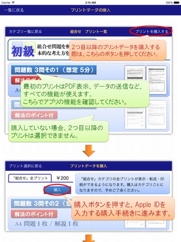 このアプリには、オリジナルのSPI問題がA4サイズのデータとして収録されています。問題と解説はそれぞれ用紙が別れていますので、宿題や自習にもぴったりです。さらに、データはPDFとMicrosoftWord(.doc)形式で提供しますので、書式をオリジナルにすることも簡単です。
