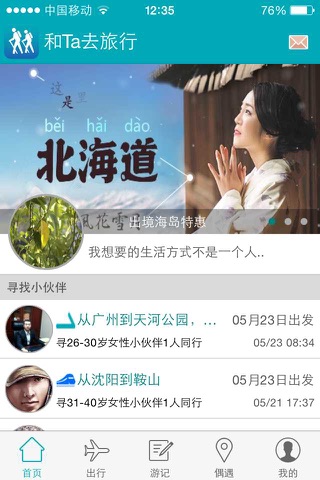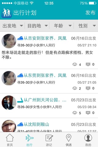 2. 发布浏览出行计划,参与行程,聊天讨论