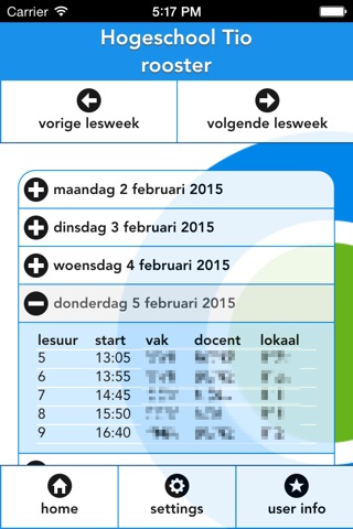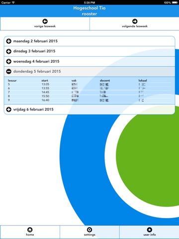 Via de Tio App worden je cijfers en je les- en tentamenrooster overzichtelijk weergegeven. Je vindt hier, naast de vakcodes voor je lessen en tentamens, de aanvangstijd van de les, naam van de docent en het leslokaal waar je zijn moet. Uiteraard is de Tio App vormgegeven in de Tio huisstijl. Maar je kunt de Tio app ook customizen door de kleuren aan te passen.