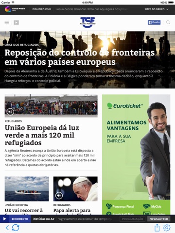 Uma ponte para Portugal. Positivo: ligacao em directo a radio; ultimo noticiario; noticias escritas; video s; programacao. Negativo: nao esta optmizado para iPhone 5; programas nao estao disponiveis para audicao; emissao em directo e ultimo noticiario nem sempre funcionam