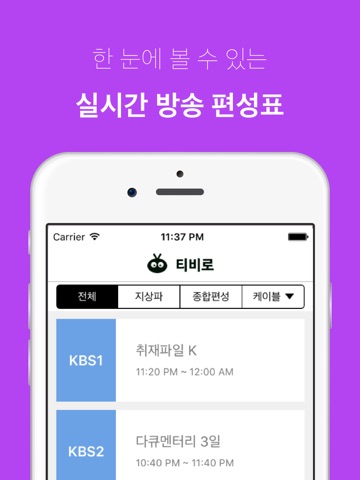 이제 티비로를 통해, 지금 어느 채널에서 어떤 방송을 하는지