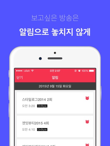 - 보고 싶은 방송 미리 알림등록 해두세요. 방송 시작 5분전에 미리 알려드립니다.