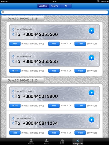 Sort tests by different dates for the ultimate organization experience, have all of your recent tests is the palm of your hand - testing VoIP routes has never been easier.
