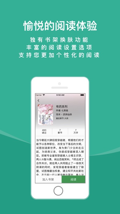 2.阅读体验好 - 独有书架换肤功能,丰富的阅读设置选项,支持您更加个性化的阅读。