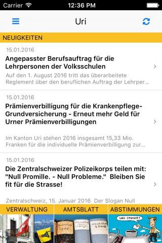 Alles Wissenswerte zum Kanton Uri (Schweiz), das Land am Gotthard: News, Verkehrsinfos, Agenda, Publikationen, Verwaltung und Politik. Mit integrierter Kartenfunktion, integrierter Anruf- und E-Mail-Funktion und automatisch aktualisierten Inhalten von www.ur.ch. Auch offline lauffähig. Zu Online-Zeiten Push-Mitteilungen und integriertes eGovCenter mit Online-Schalter und zentralem Benutzerkonto.