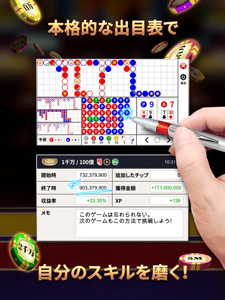 ● ゲームを分析してバカラ技術を磨くことができます