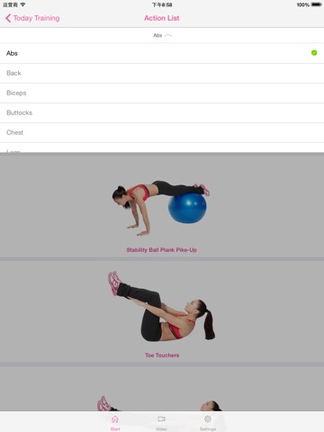 This App provides professional coaching arrangements. daily training can conduct a training exercise, each includes different exercises, and can rest in interval of 15s, and you also can easily see any action in the action list.