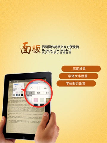 ● 专业护眼。字距,行距,亮度,字体全部经过专业研究,保护您眼睛!