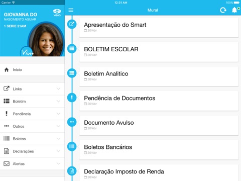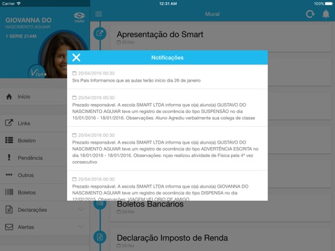 Avisos, ocorrências escolares, declaração de pagamentos, enfim....