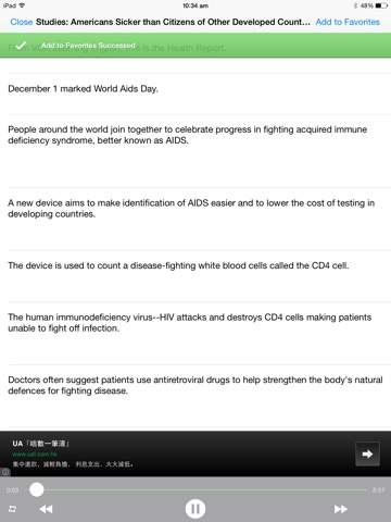 2、最有价值的原声音频:精心节选原声精华,每篇新闻的长度控制在2分钟,符合听力训练最佳效果要求!