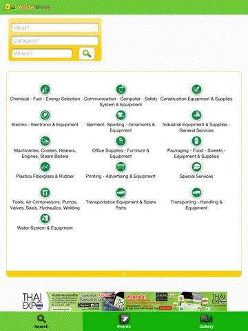 YellowGreen Pages Thailand เป็น Directory ที่รวบรวมข้อมูลสินค้าและบริการในกลุ่มอุตสาหกรรม โดยแบ่งเป็น 16 ประเภท ครอบคลุมอุตสาหกรรรมทั้งการผลิต และบริการอย่างครบถ้วน รูปเล่มกระทัดรัด จัดแบ่งหมวดหมู่ชัดเจน เพื่อความสะดวกในการค้นหาข้อมูล, มี Fast Find เพื่อการค้นหาที่ฉับไว, มีดรรรชนีสินค้าและ บริการแยกตามตัวอักษร ทั้งสองภาษา