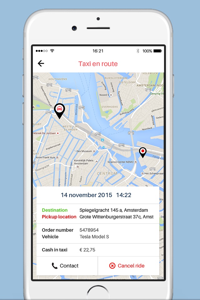 Order a taxi with one tap. Your can set your pick-up location with a single tap, or Google search for an address manually. By optionally setting a drop-off point, you get a reliable quote for your trip. Follow your approaching taxi on the map. So no more needless waiting. Change of plans? You can easily manage your bookings and reservations in the app and view past trips as well.
