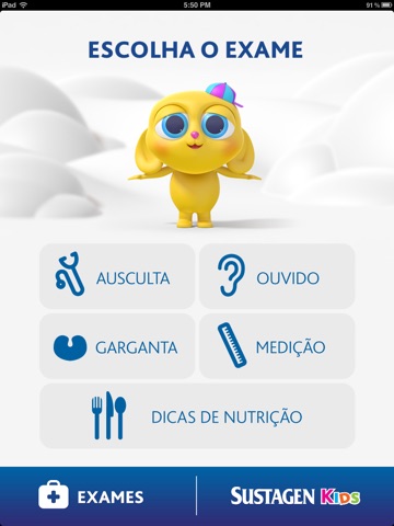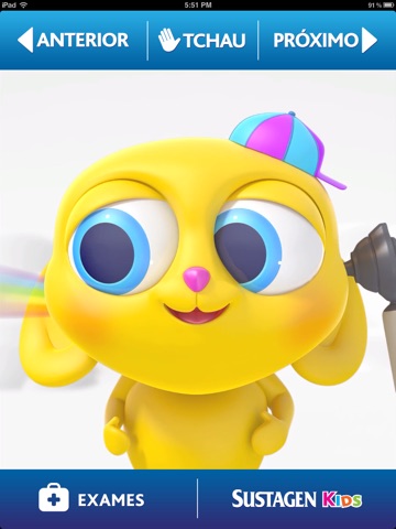 Para isso, traz o Sussu, um simpático bichinho amarelo que estimula a criança a fazer os movimentos necessários para a realização destes exames: