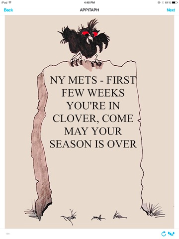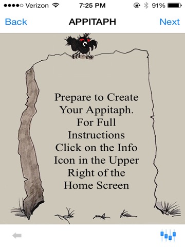 EnGRAVing of you own choice. Edgar the Raven invites you to channel your inner POEt and send a text or e-mail of your witticism inscribed on his custom, cartoon tombstone via iPhone or iPad. With your words blazoned across our custom headstone, bid a final farewell to your rivals playoff hopes, review a book, movie, whatever you desire. The only limit to Appitaph is your imagination !