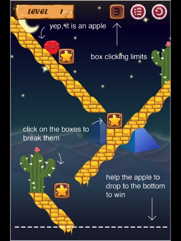 - You have a limit of 3 clicks to drop the apple until it reaches the bottom.