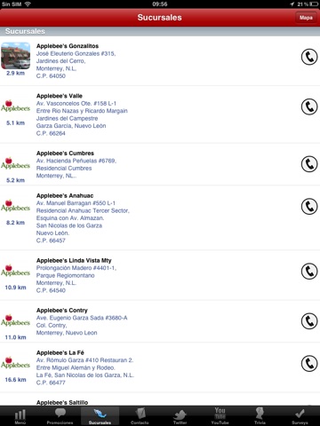 - Menú de promociones actuales y aquellas sólo disponibles con la aplicación.
