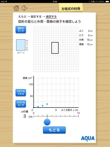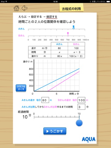 "AQUA" is a math teaching materials touching the screen to learn intuitively.