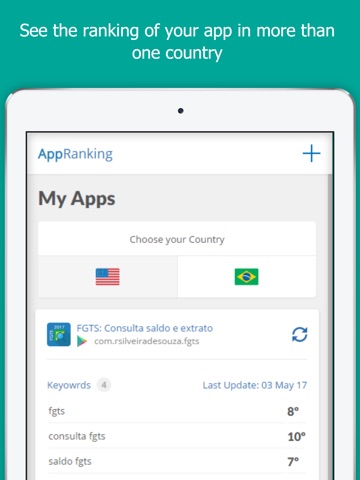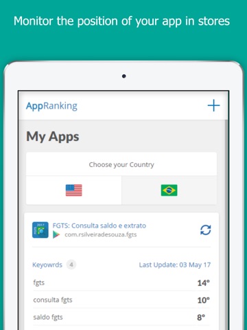 Download App Ranking now and follow the evolution of your applications and monitor your competitors.