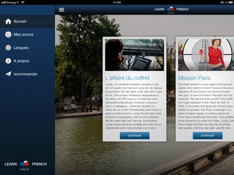 A real good opportunity to listen and learn French while having fun..and in my own language..