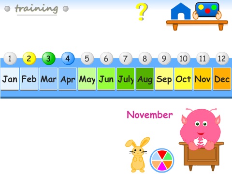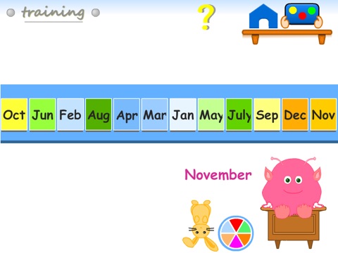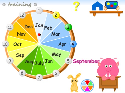Knowing the days of the week and the months of the year allows children to grasp the complex notion of time. Thanks to its intuitive user interface and well-developed features, this game provides children with new ways of learning.