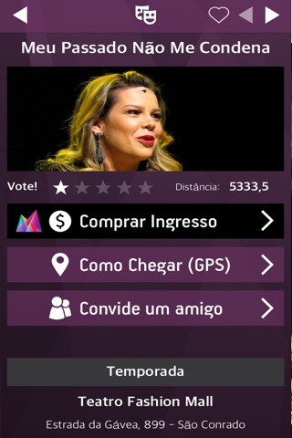 Saiba sobre todos os espetáculos teatrais no Brasil, compre ingressos, tenha informações detalhadas e atualizadas, converse com outros fãs, chegue ao teatro navegando via GPS e participe de promoções e desconto. Tudo em um lugar só.