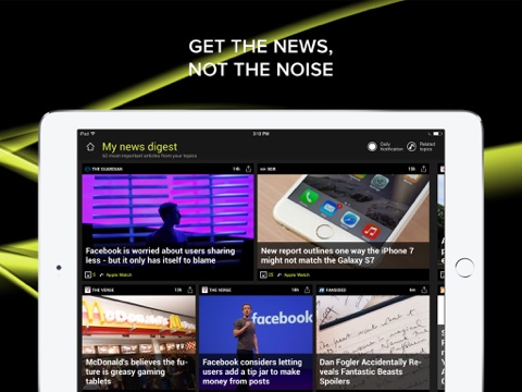• Smart: Appy Geek learns as you read, personalizing your news experience automatically.