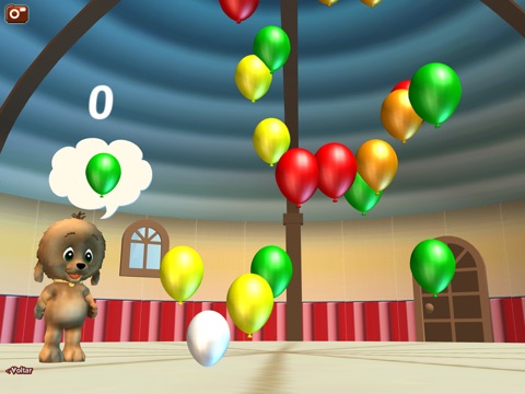 Brincando, a criança poderá aprender as cores em Português, Inglês e Espanhol ao mesmo tempo em que exercitará e desenvolverá sua coordenação motora estourando balões da cor que o Cacau está sugerindo.