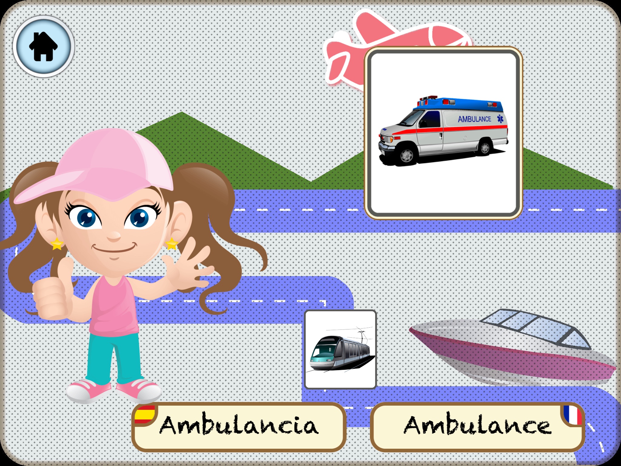 Aprenderá Francés a través de la repetición de palabras, con sencillas lecciones, incrementando el nivel de dificultad cada vez que el niño coloca la pieza en su lugar.