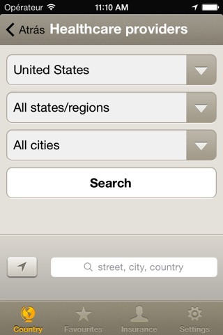 • HEALTHCARE PROFESSIONALS: here you’ll find the hospitals nearest to your home or destination, using a search facility with a geolocation option. You can search by country, state/region and city: your results are displayed as a list or on a map.